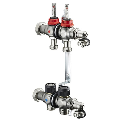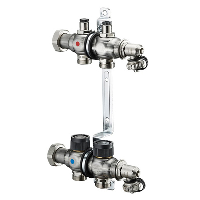 На подаче с плоским уплотнением, с вентильными вставками М30х1,5 для термостатического и электронного регулирования.